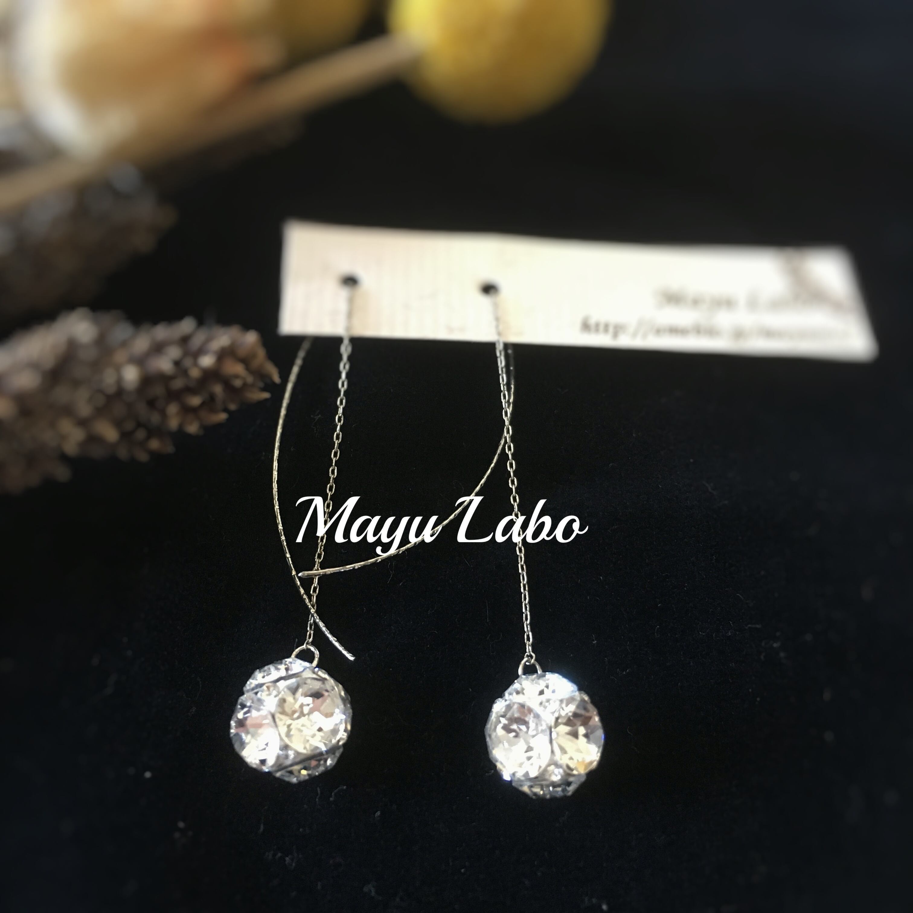 大きめなクリスタルのスワロフスキーがゆれるピアスです。